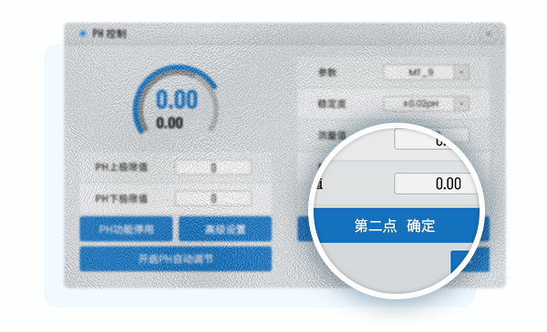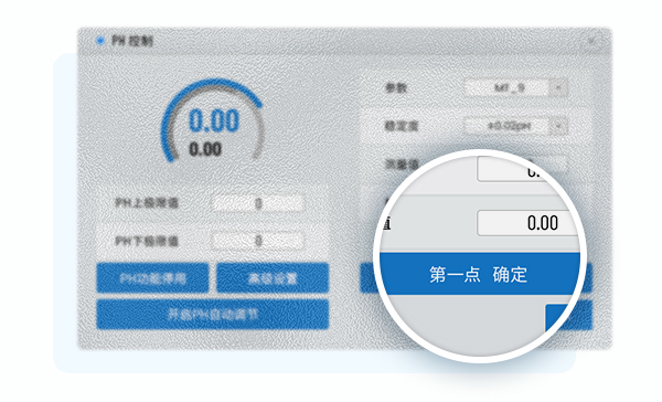 ③ 將玻璃球泡部分浸沒在第一種緩沖液(例pH=4.01)內(nèi)(隔膜應(yīng)完全浸沒在緩沖液中),待標(biāo)準(zhǔn)值穩(wěn)定后(30秒至60秒)點擊第一點確認,第一點標(biāo)定結(jié)束。