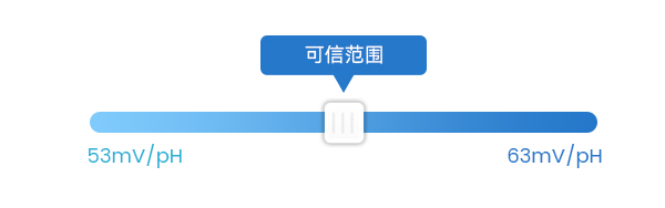 ⑦ 根據(jù)能斯特方程理想狀態(tài)下(25℃)時,理想斜率為59mV/pH,即溶液每變化一個pH值,電極就產(chǎn)生59mv的電位變化。那么理想校正下,斜率應(yīng)在59mV/pH左右。當(dāng)斜率的值小于53mV/pH或者大于63mV/pH時,需要更換新的pH電極,所以當(dāng)校正斜率在53~63mV/pH范圍時,結(jié)果是可信的。