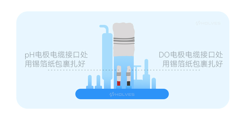 • DO電極電纜接口處用錫箔紙包好并用皮筋捆扎,防止滅菌過程脫落,影響電極性能;