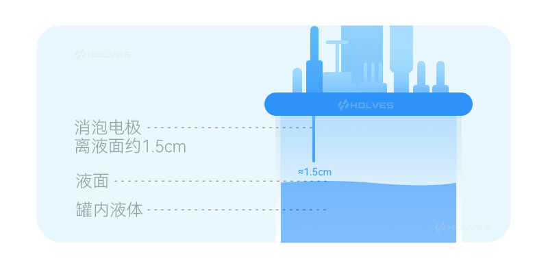 取下消泡或液位電纜線,將消泡或液位電纜插到底,滅菌后定位到所需要的高度后就不要再壓下去,消泡電極的高度離液面約1.5cm處。