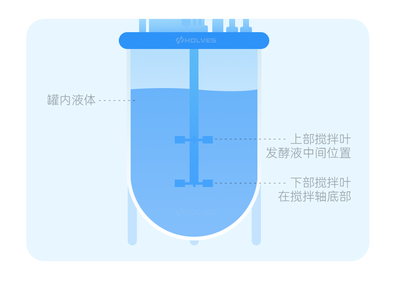 滅菌前需調(diào)整好攪拌葉的位置,下部攪拌葉盡量安裝在攪拌軸底部,上部攪拌葉調(diào)整到所加發(fā)酵液的中間位置。