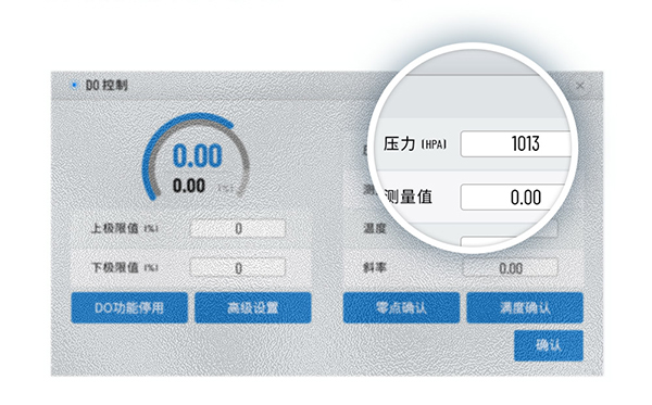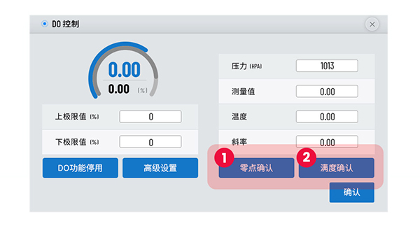 將電極接通電源后,先放入無氧環(huán)境中,待讀數(shù)穩(wěn)定后點擊“零點確認”,再將電極放入純氧環(huán)境中,待讀數(shù)穩(wěn)定后點擊“滿度確認”,彈出窗口“DO電極OK”即表示校準完成。