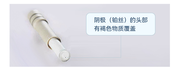 這種情況下,將內(nèi)電極的頭部對著光源觀察陰極,可以看到陰極表面顯露出黑色??墒褂脴颂?000目以上的砂紙在鉑絲頭部輕輕打磨數(shù)次,至鉑絲表面發(fā)亮即可。切不可過度打磨,否則會使內(nèi)電極頭部受損。